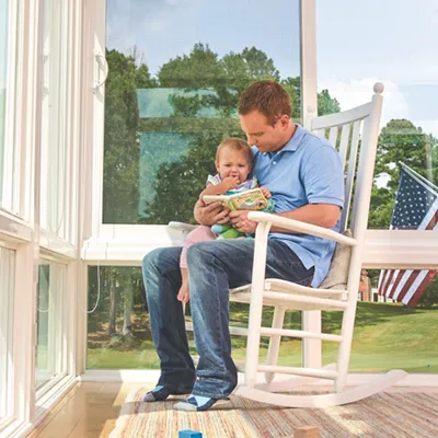 All Champion Sunroom windows are double-paned and glazed to provide maximum energy efficiency and keep you and your family comfortable all year long. We offer several styles and shapes to fit your space. For windows that open (as opposed to, say, fixed picture windows), our large, sliding windows are most popular.